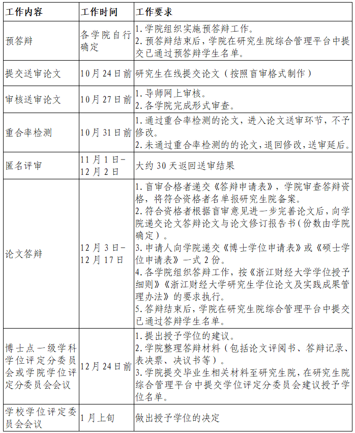 为保证我校2026年春季毕业研究生学位授予工作的顺利进行,现将学位论文预答辩、重合率检测、评审、答辩及学位授予等工作安排通知如下: